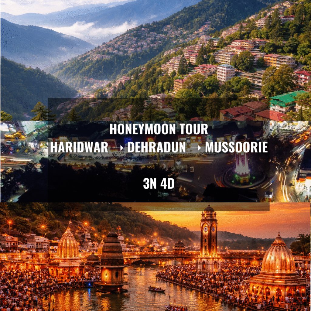 The Haridwar–Dehradun–Mussoorie Honeymoon Tour is a perfectly curated romantic getaway designed for newly married couples seeking a blend of natural beauty, peaceful hill vibes, and private leisure time....