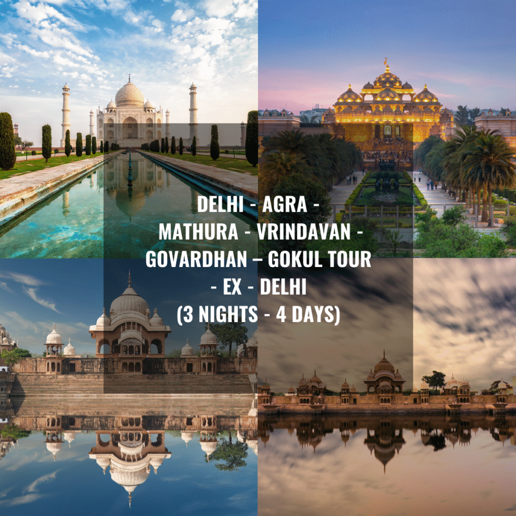 The Delhi–Agra–Mathura–Vrindavan–Govardhan–Gokul Tour Package is a perfect blend of heritage sightseeing and spiritual exploration. This beautifully planned journey takes you from the capital city of Delhi to the iconic monuments of Agra and then into the sacred Braj region, the divine land of Lord Krishna.