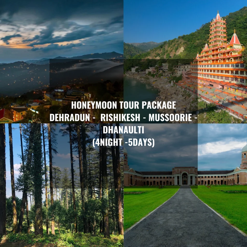 The Rishikesh – Mussoorie – Dhanaulti Honeymoon Package is a perfect blend of romance, nature, and spiritual serenity, designed especially for newly-married couples looking to celebrate their love amidst the beautiful hills of Uttarakhand. This thoughtfully planned 5-day journey takes you through the peaceful ghats of Rishikesh, the charming hill station of Mussoorie, and the tranquil surroundings of Dhanaulti.