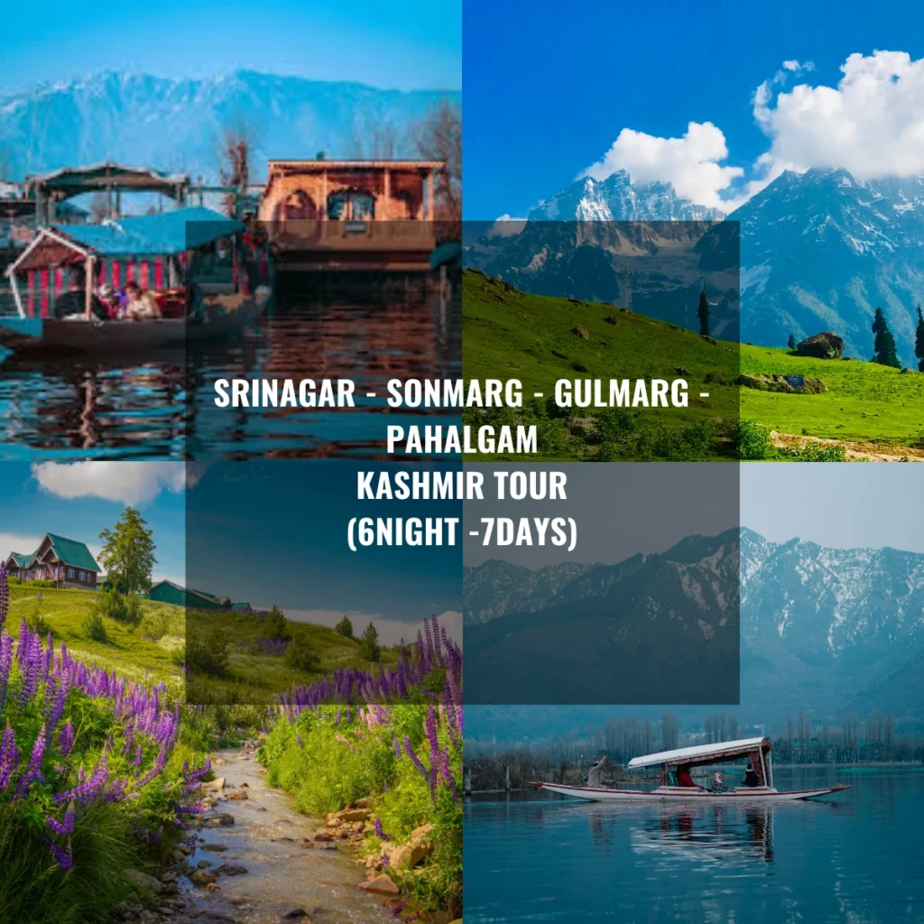 The Kashmir Tour Package (7 Days / 6 Nights) is a complete and immersive journey through the most breathtaking destinations of Kashmir — Srinagar, Sonmarg, Gulmarg, and Pahalgam. Designed for travelers who want to experience Kashmir in depth, this tour blends natural beauty, serene landscapes, cultural heritage, and leisure experiences.
